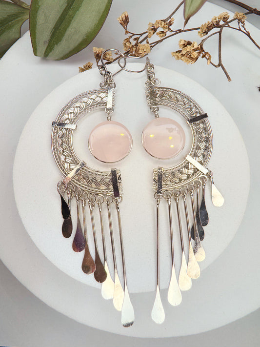 Brinco Nostalgia Aço - Quartzo rosa