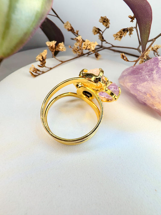 Anel Triplice - Quartzo rosa, Turmalina e Ametista