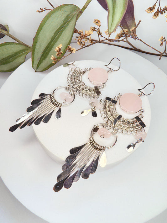 Brinco Júpiter - quartzo rosa