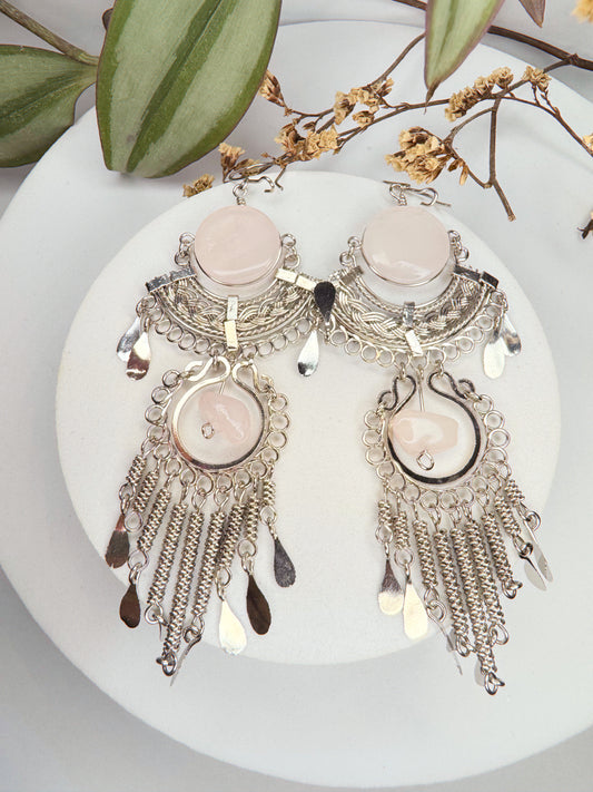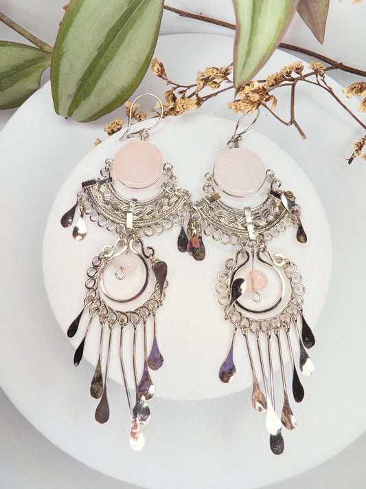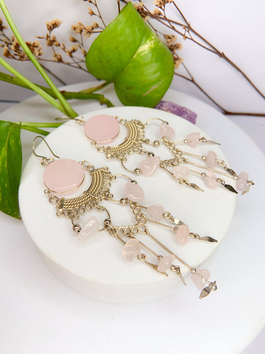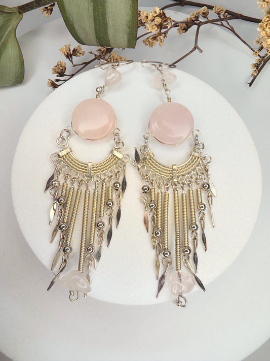 Brinco Júpiter - quartzo rosa lapidado
