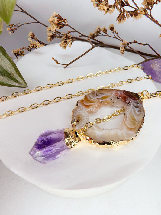 Colar Cósmico - Ágata + Ametista