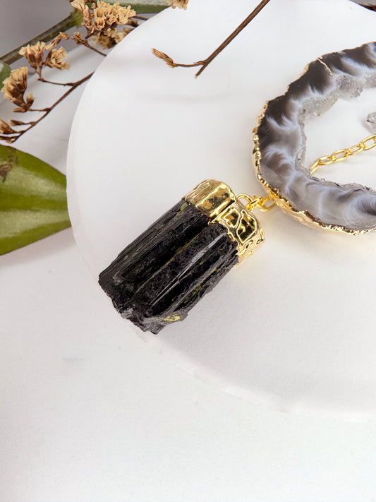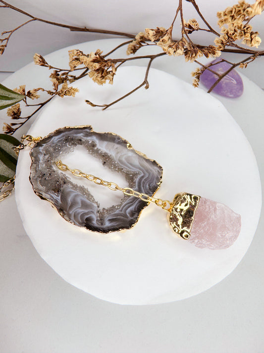 Colar Cósmico - Quartzo de cristal + Cianita azul