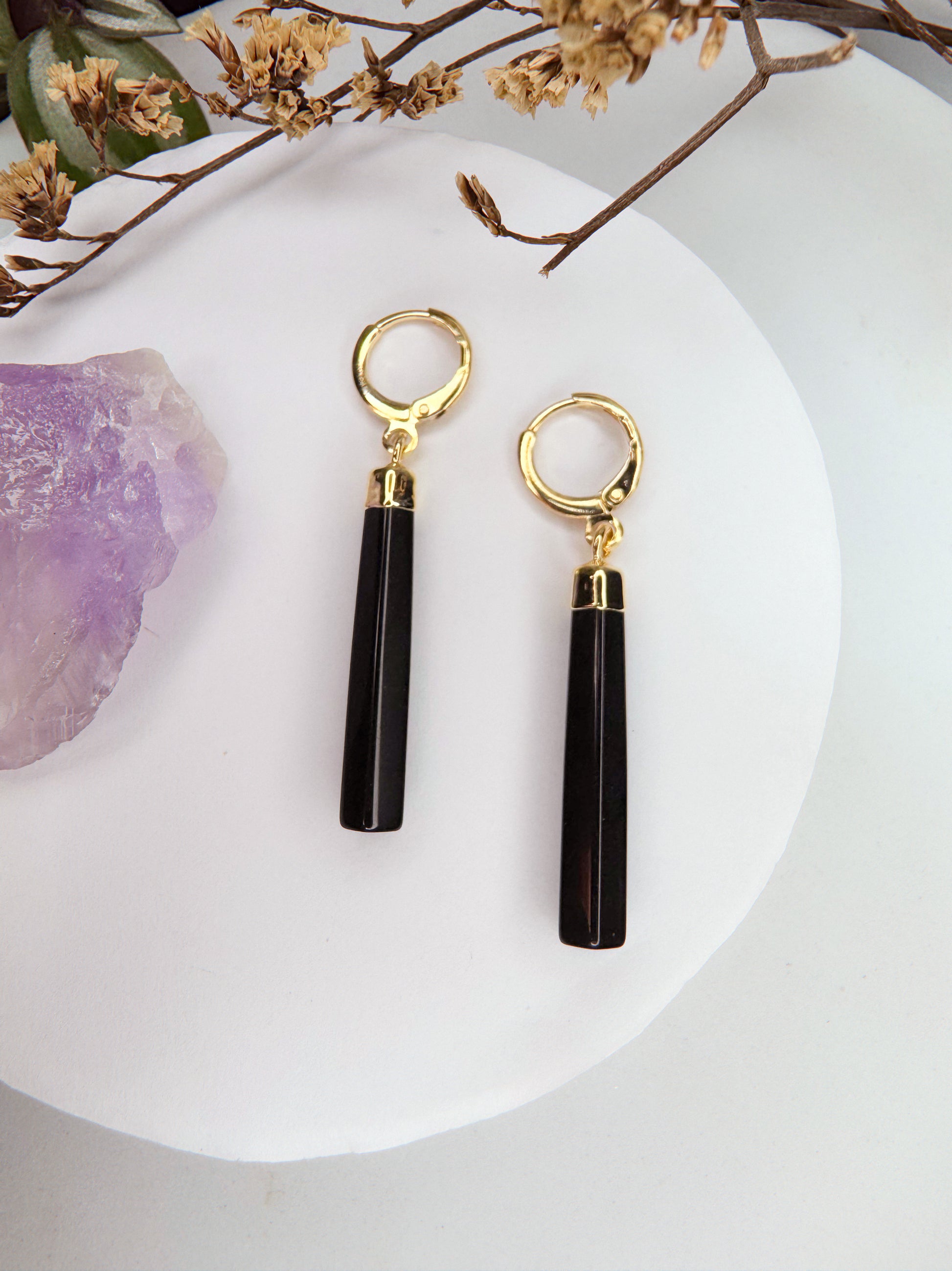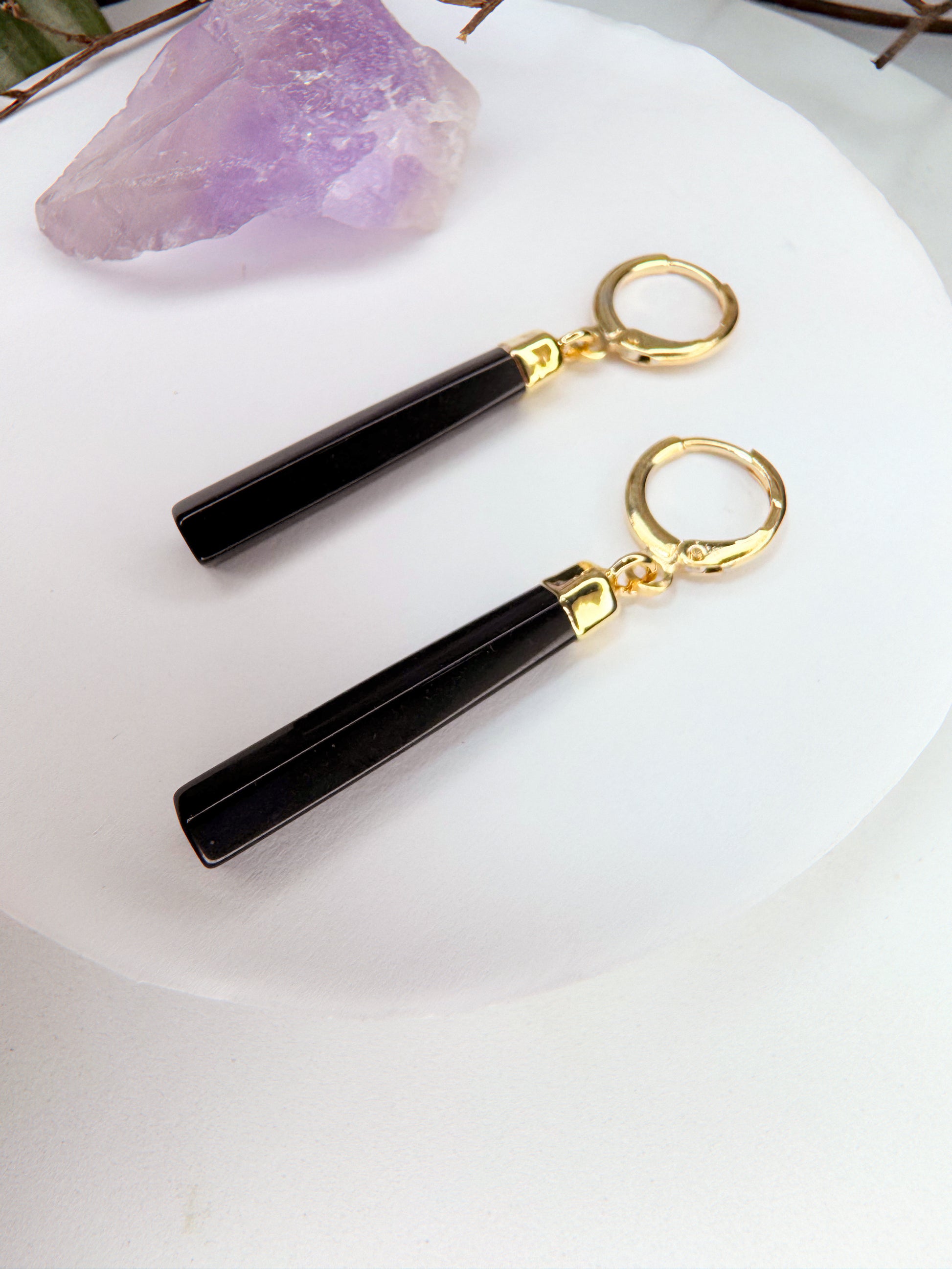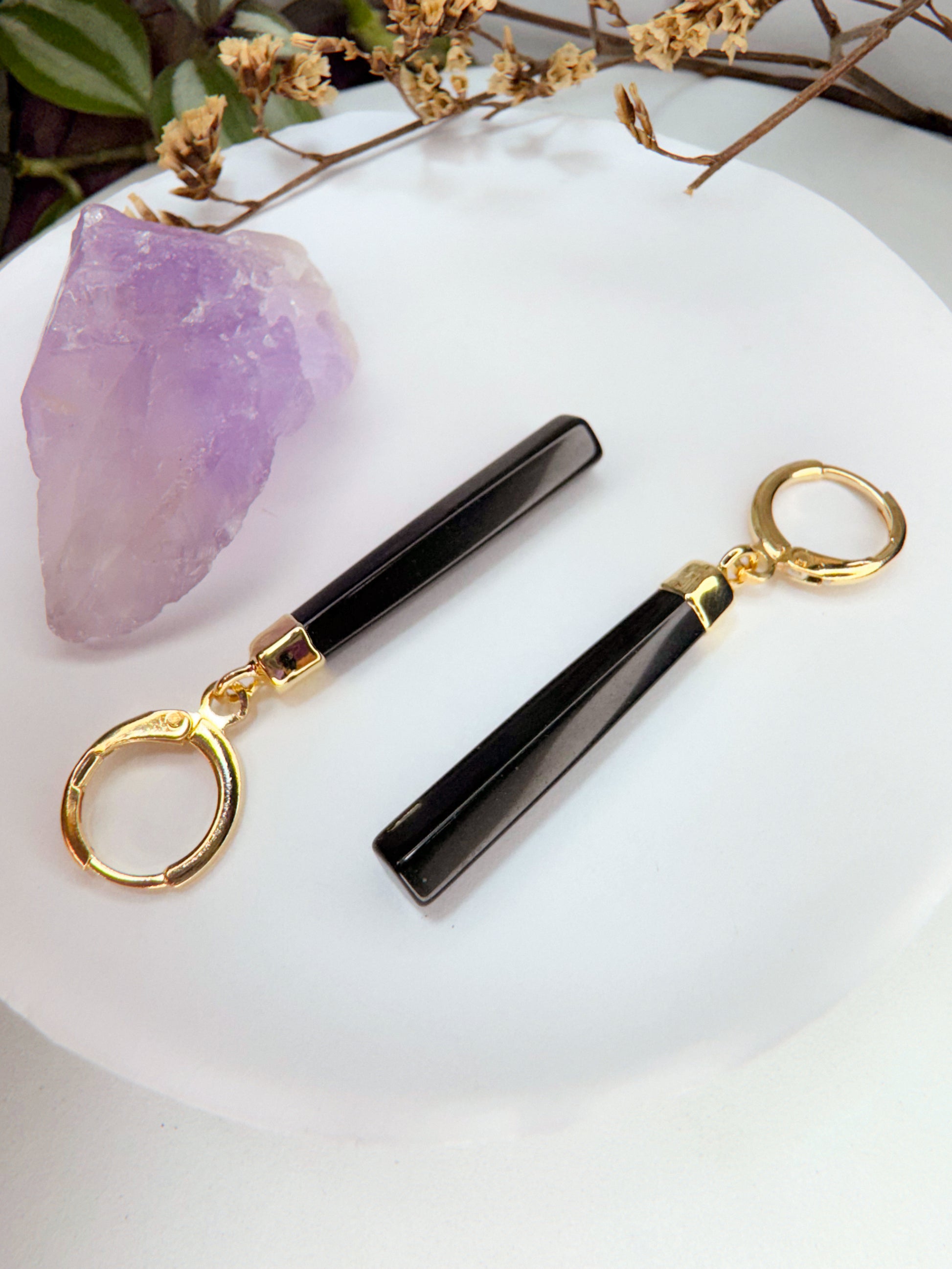 O Brinco Bastão de Ônix Lapidado é um amuleto que une sofisticação e significado.