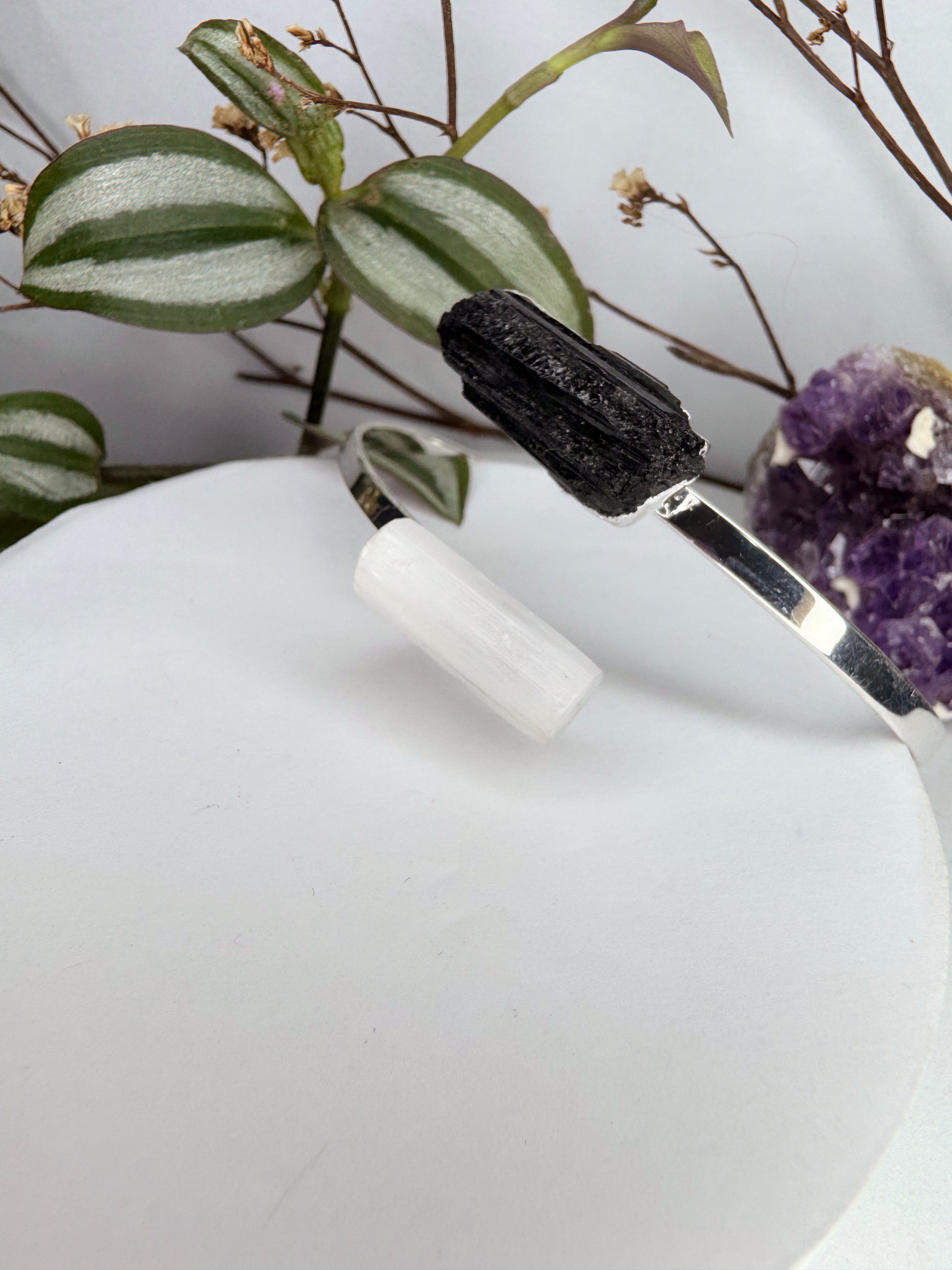 Apresentamos a você uma joia que encapsula a harmonia perfeita entre a força protetora da Turmalina Preta e a pureza purificadora da Selenita Branca. Esta fusão única é como a dança entre a escuridão e a luz, criando um equilíbrio sagrado.