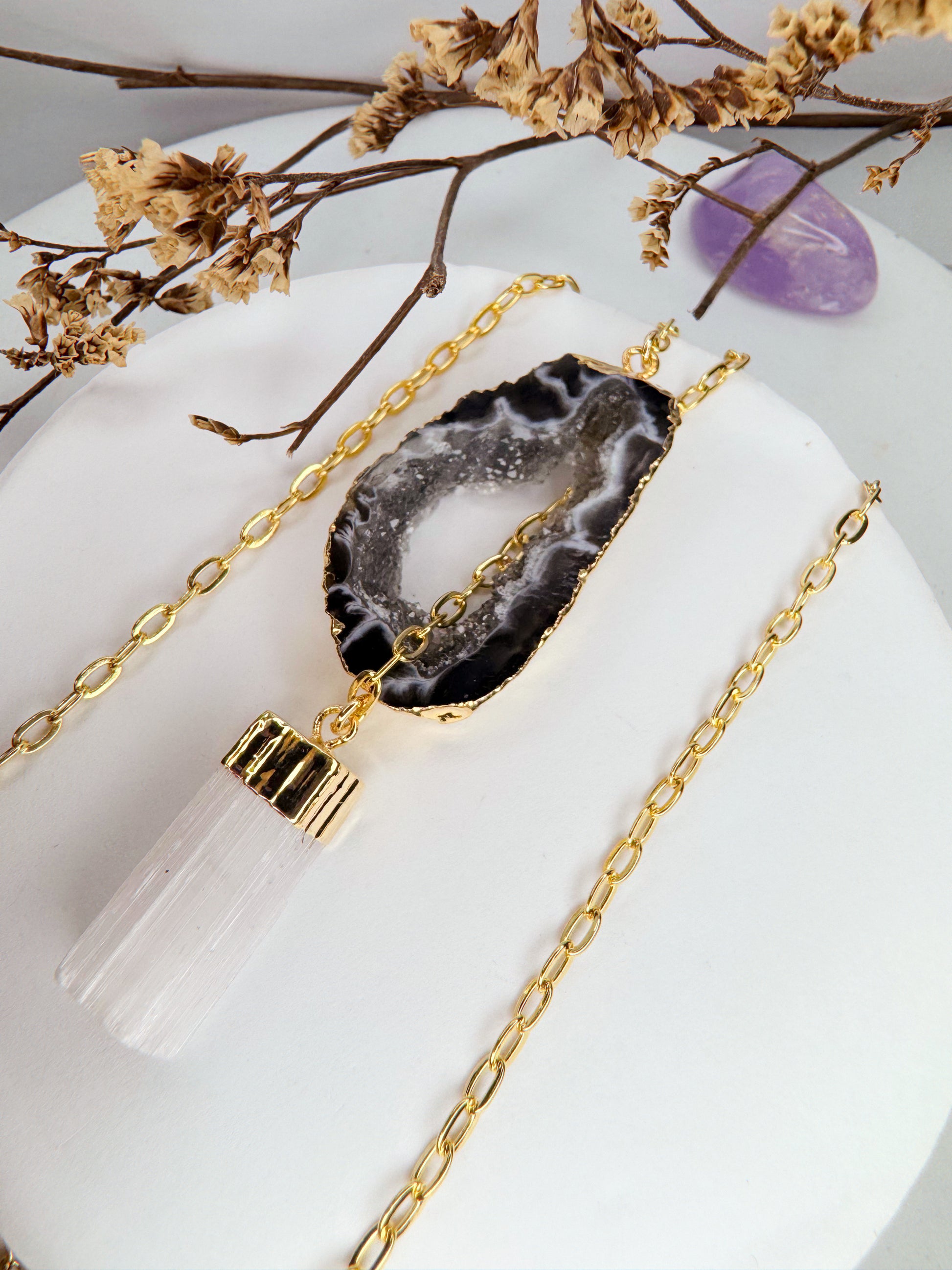 Um colar que conecta o corpo à alma — firme como a Ágata, puro como a Selenita. 🤍✨
