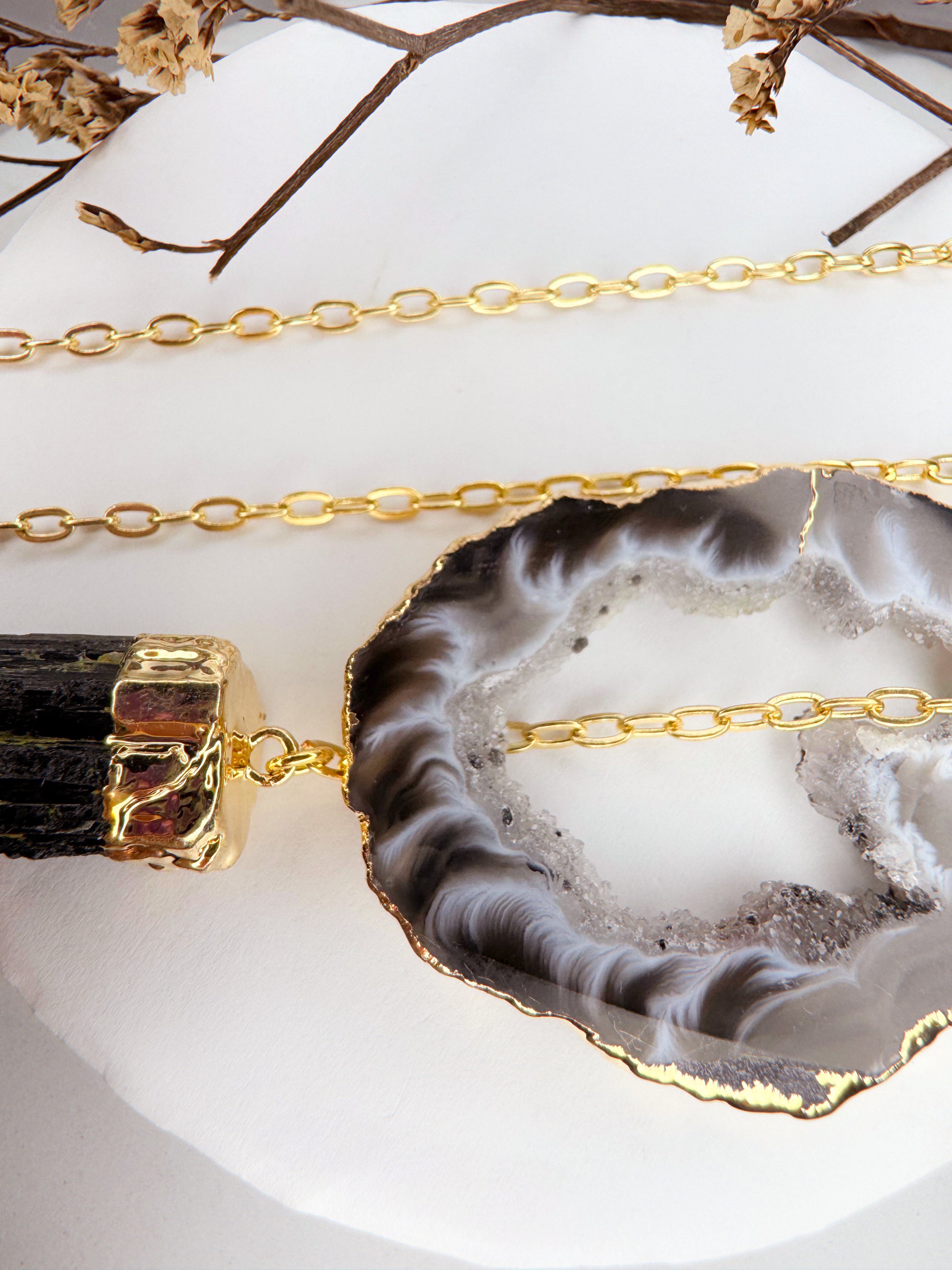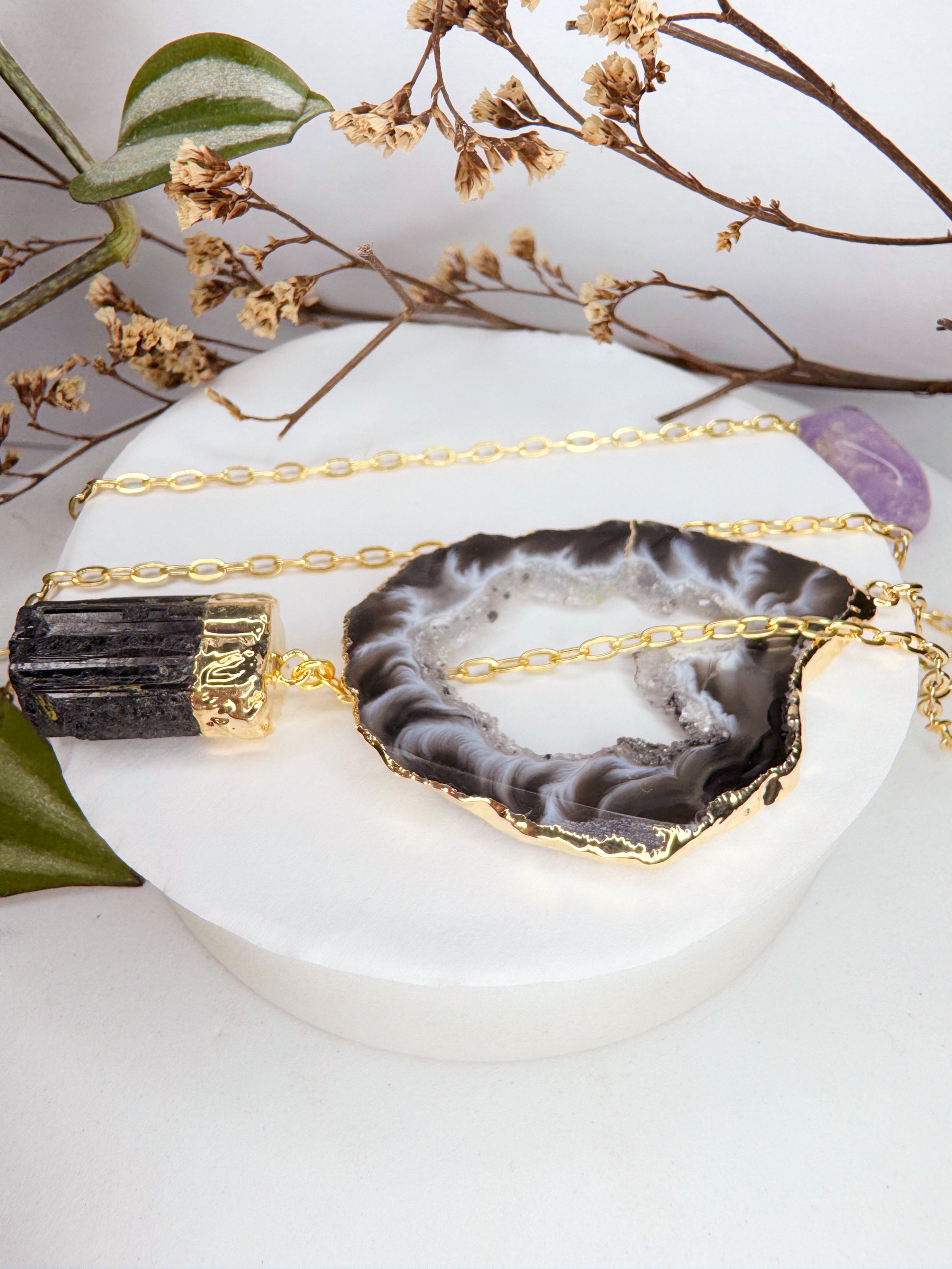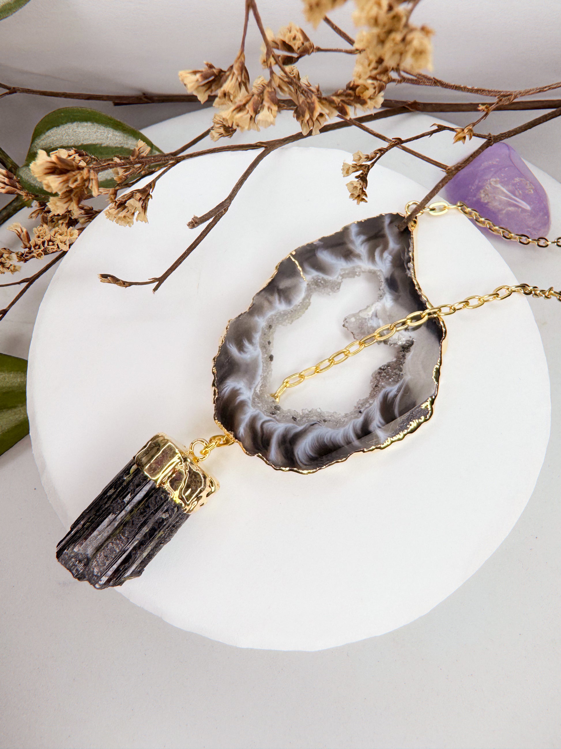 Colar Cósmico - Ágata + Turmalina Preta