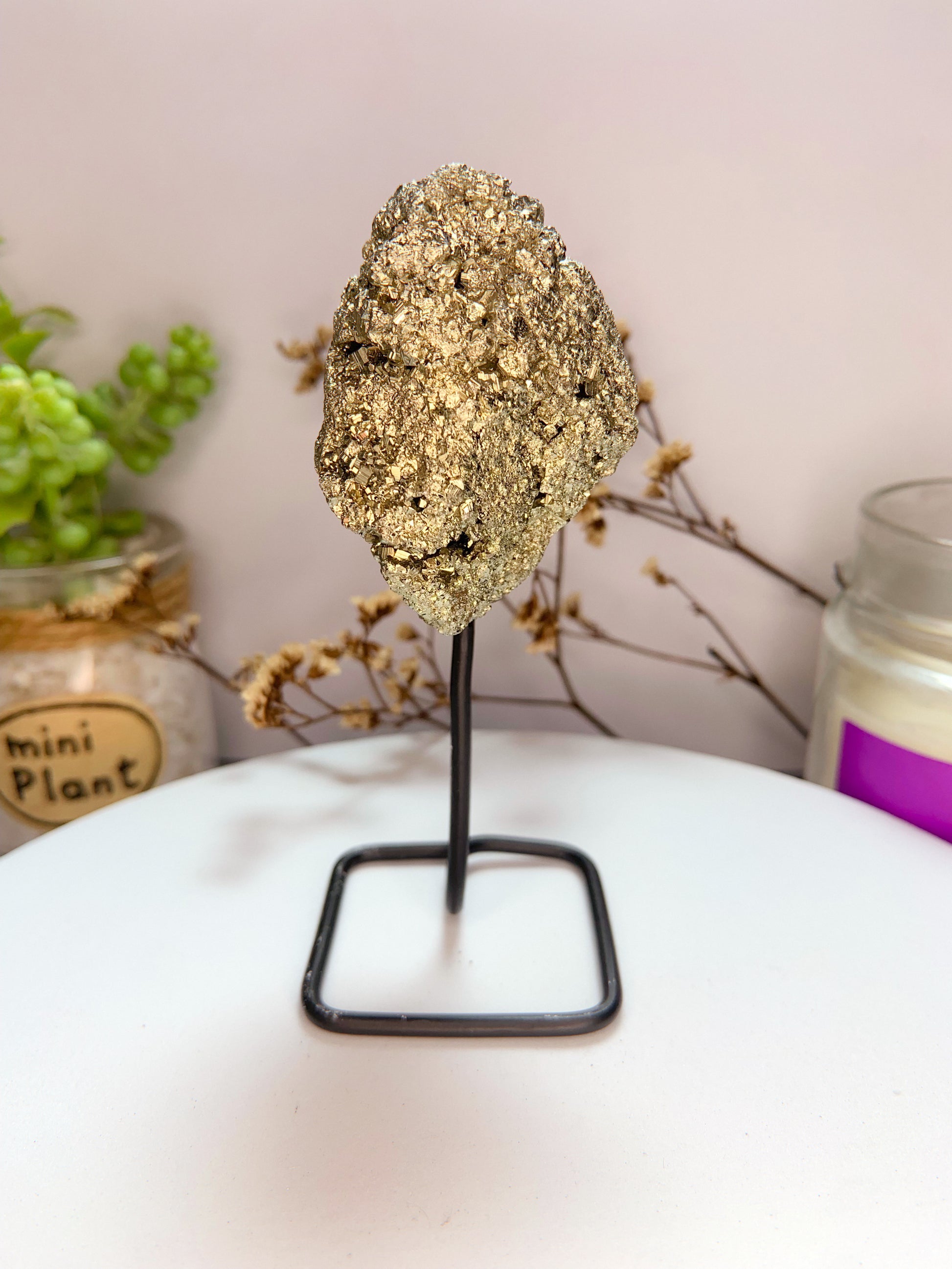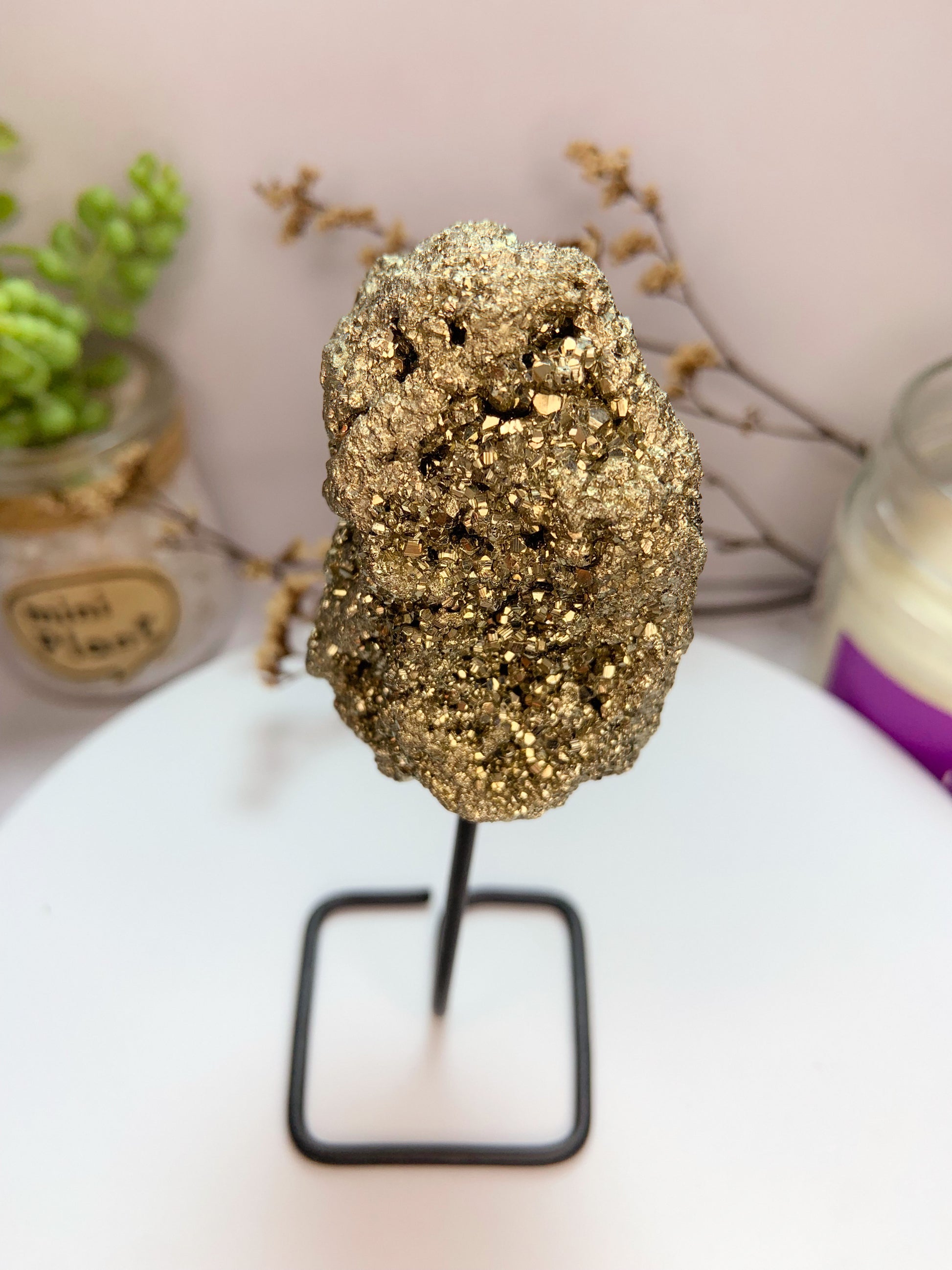 Pirita é um cristal poderoso para energia de prosperidade, proteção e sucesso. Seu brilho dourado remete à riqueza e à abundância, tornando-se um amuleto poderoso para atrair boas oportunidades financeiras e fortalecer a autoconfiança. Além disso, a Pirita também bloqueia energias negativas, criando um campo de proteção ao seu redor.