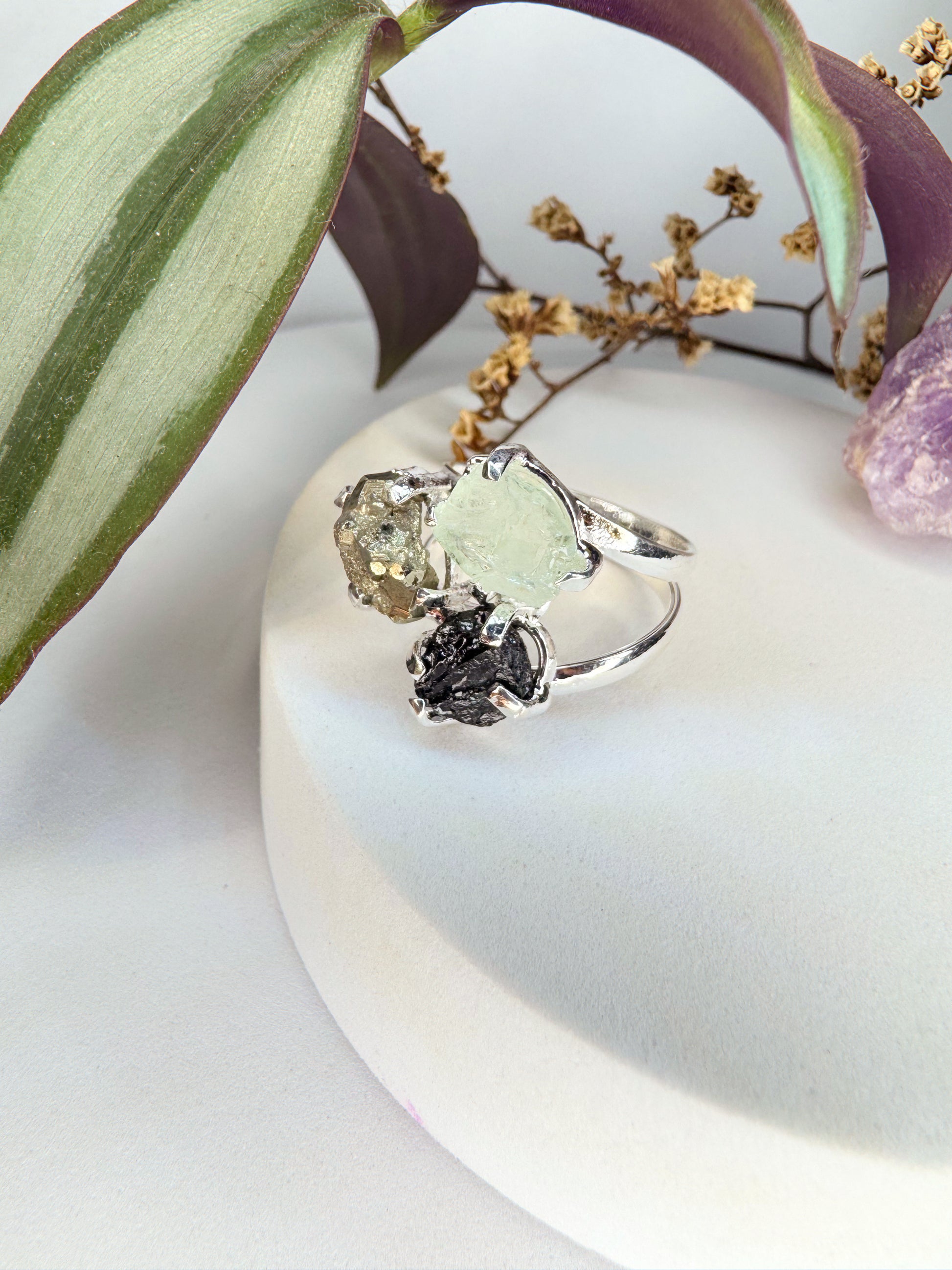 Anel Triplice - Agua marinha, Turmalina e Pirita