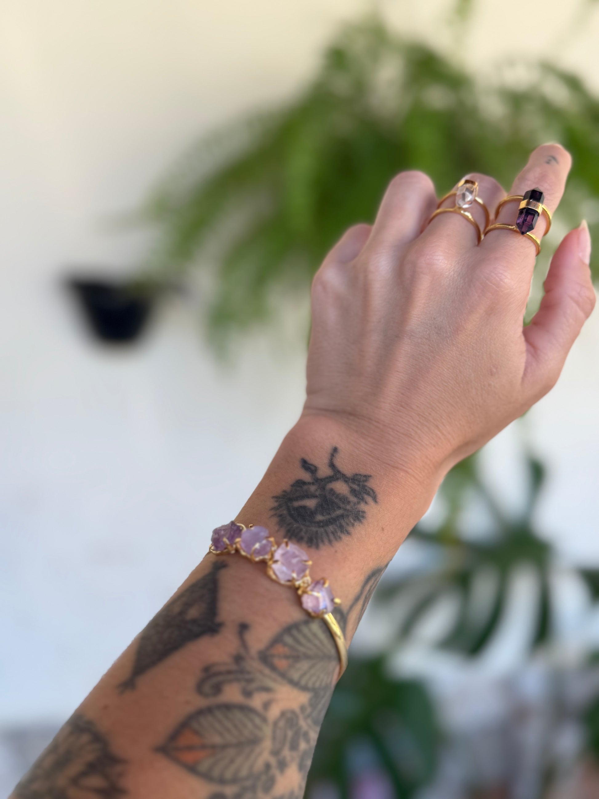 Ametista é um cristal que atua de uma forma clara e poderosa, trabalha com foco na nossa visão de eu pessoal 💛 e também transmuta a energia, de uma insegurança para coragem! De desequilíbrio para equilíbrio... de ansiedade para calmaria ✨ ainda mais sendo uma drusa, essa que tem várias pontinhas e distribuída em um maior campo energético.