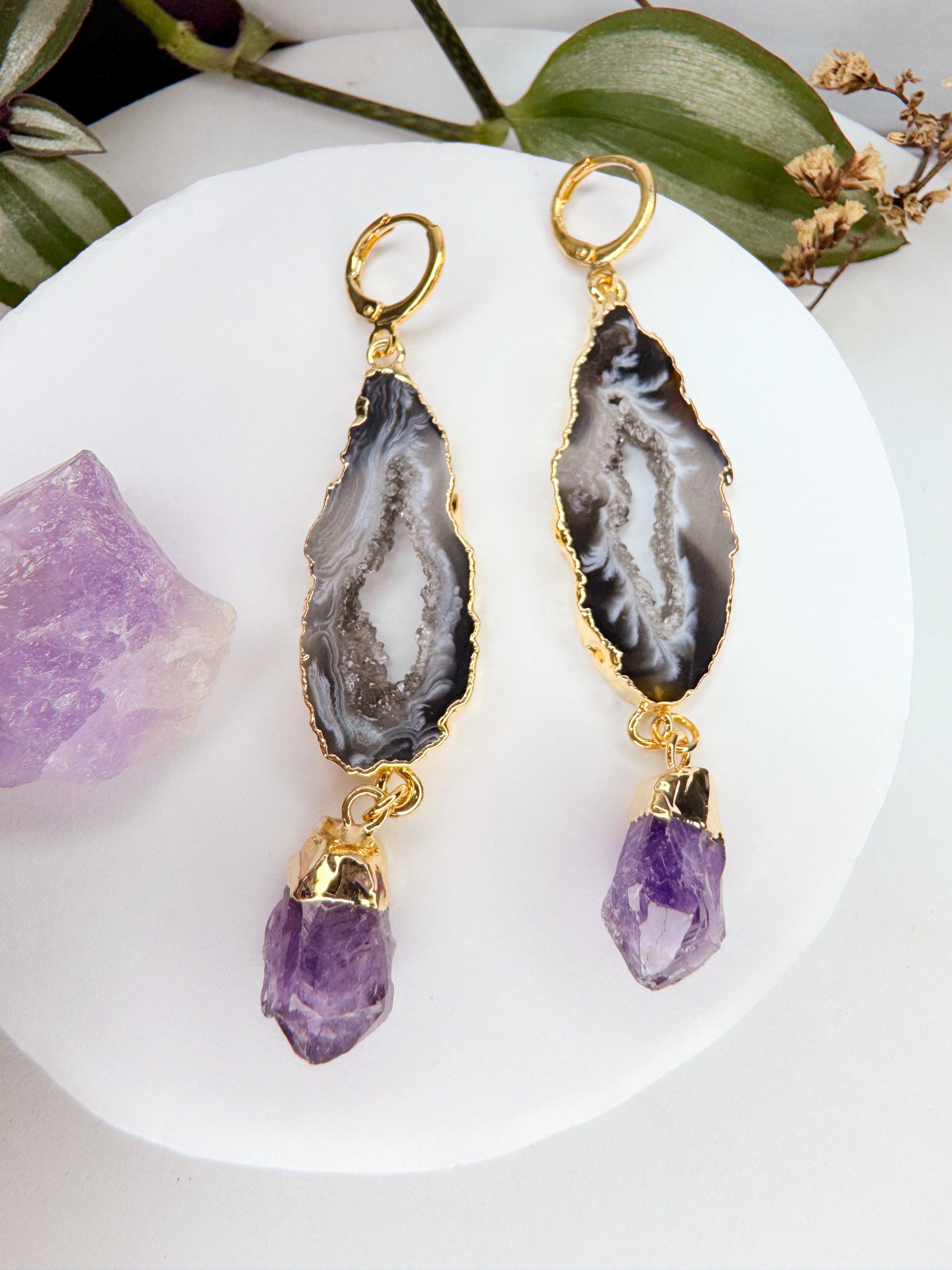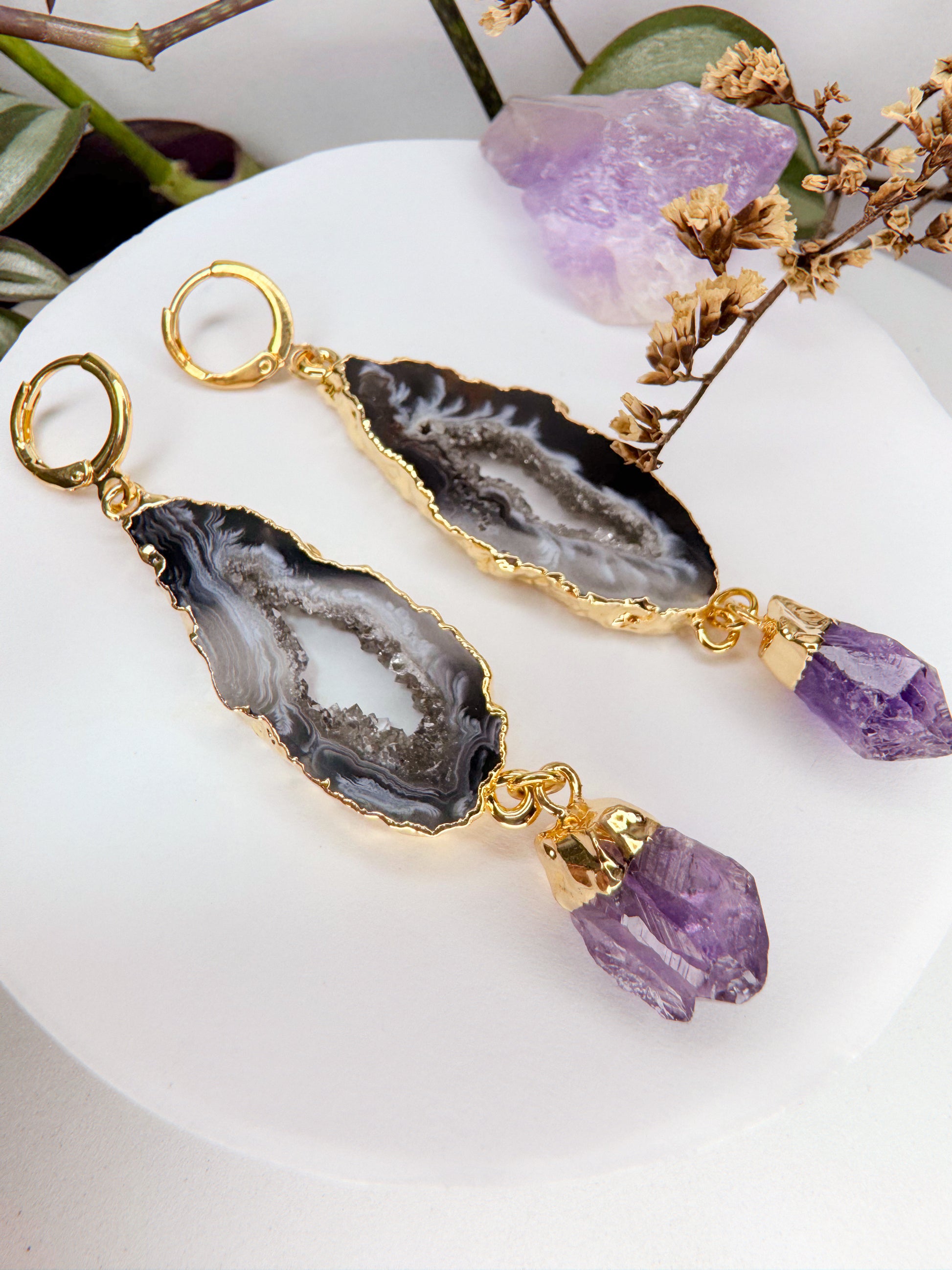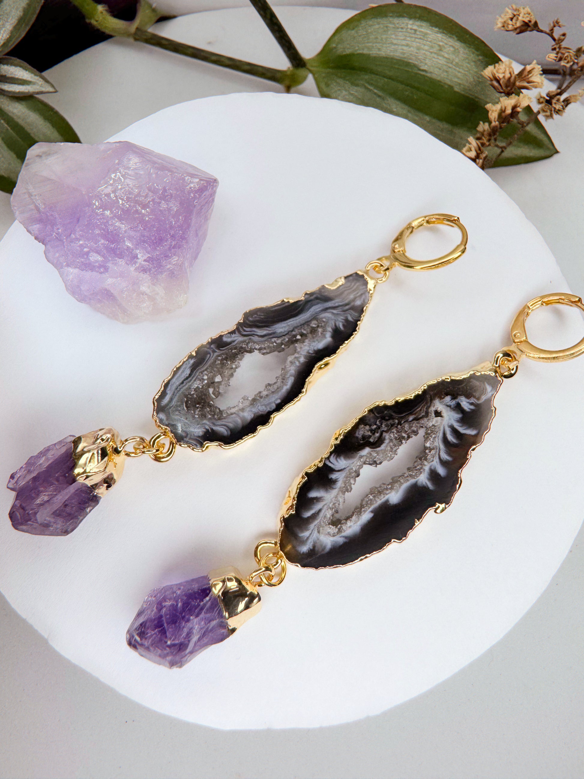O Brinco de Ágata com Ametista é um amuleto que une duas forças da natureza em um design moderno e leve.