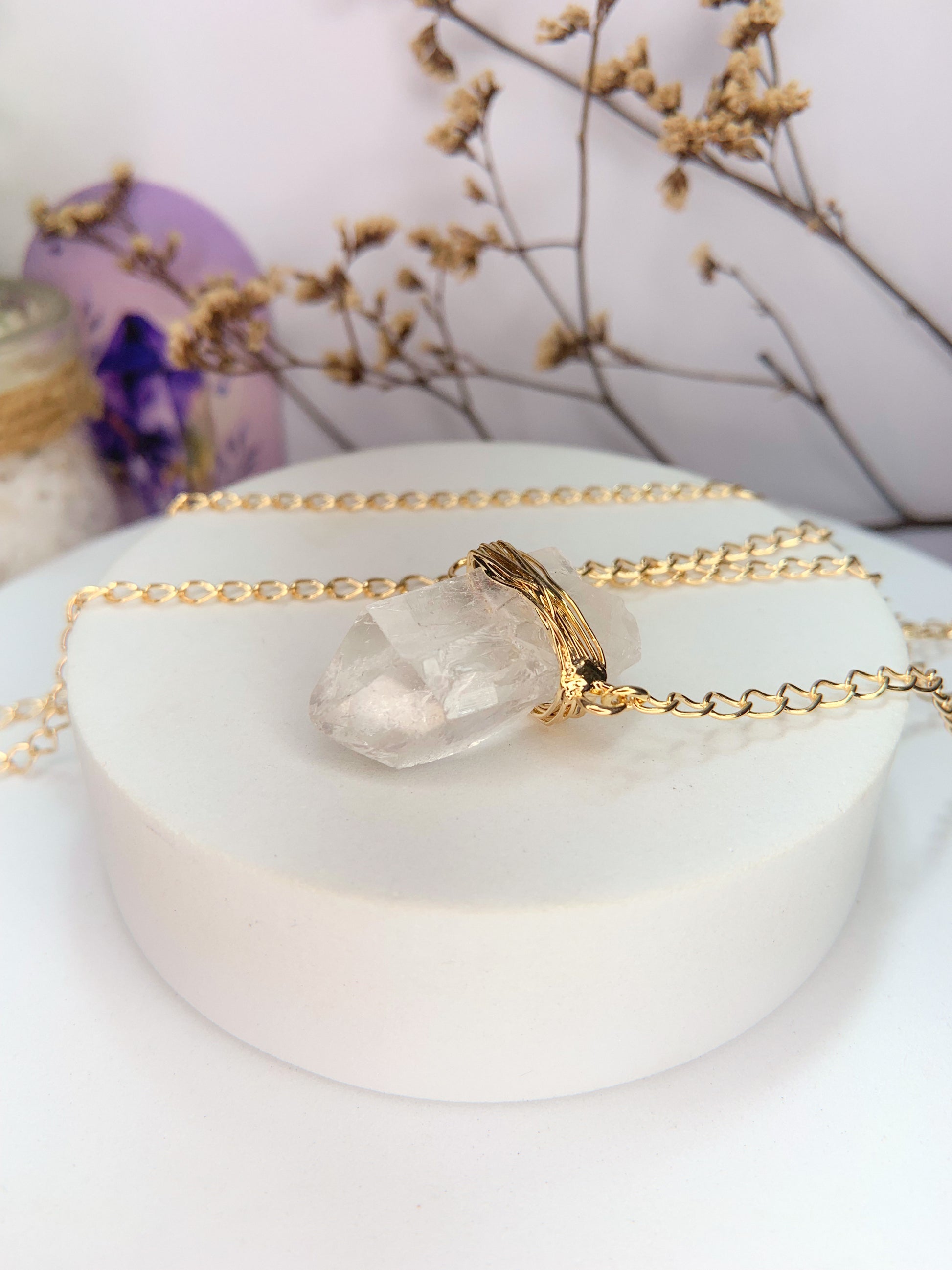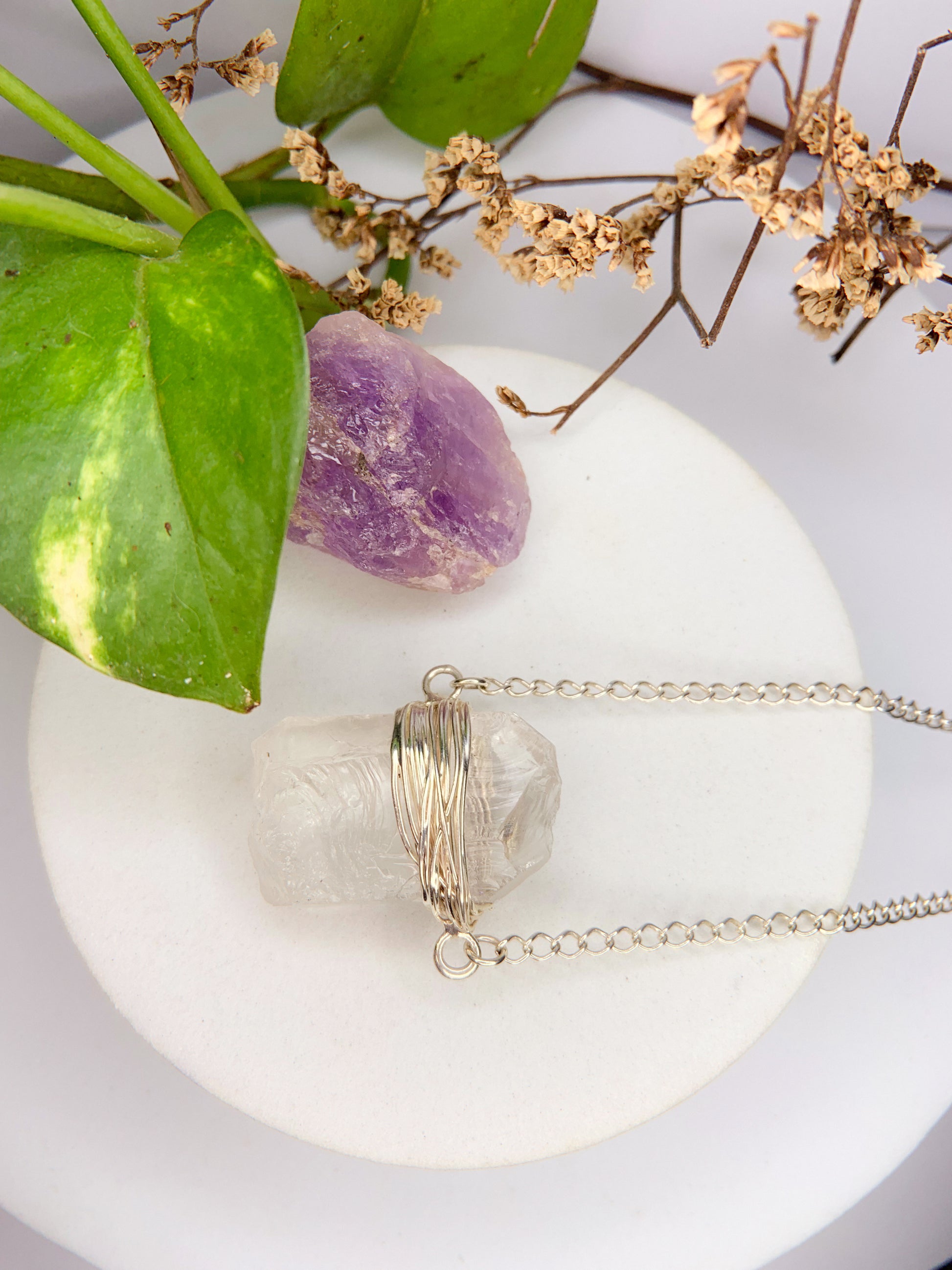 Colar atmosfera - quartzo de cristal bruto
