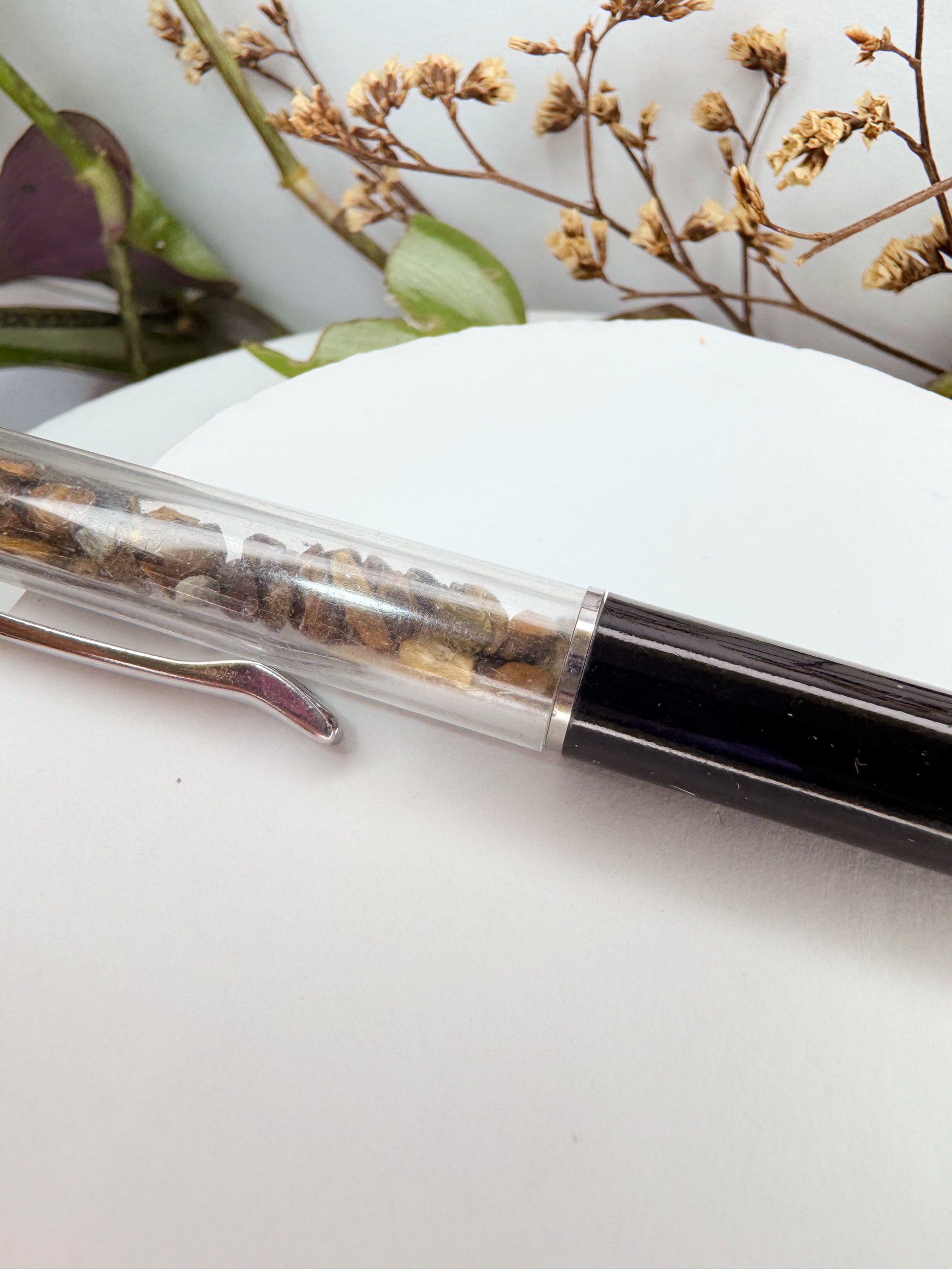 O Olho de Tigre é o cristal da força interior, protegendo contra energias negativas e estimulando a autoconfiança. Ao escrever com essa caneta, você se conecta com essa poderosa vibração, trazendo mais clareza e ousadia para suas decisões.
