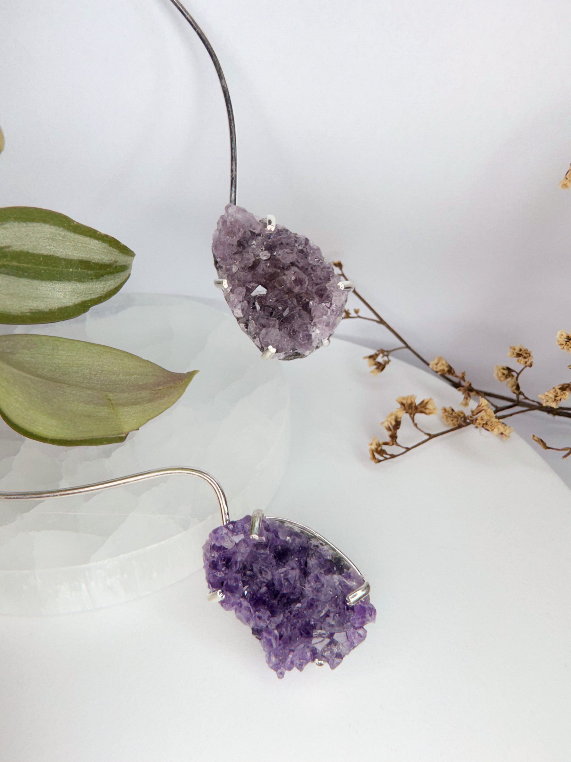 Ametista é um cristal que atua de uma forma clara e poderosa, trabalha com foco na nossa visão de eu pessoal 💛 e também transmuta a energia, de uma insegurança para coragem! De desequilíbrio para equilíbrio... de ansiedade para calmaria ✨ ainda mais sendo uma drusa, essa que tem várias pontinhas e distribuída em um maior campo energético.