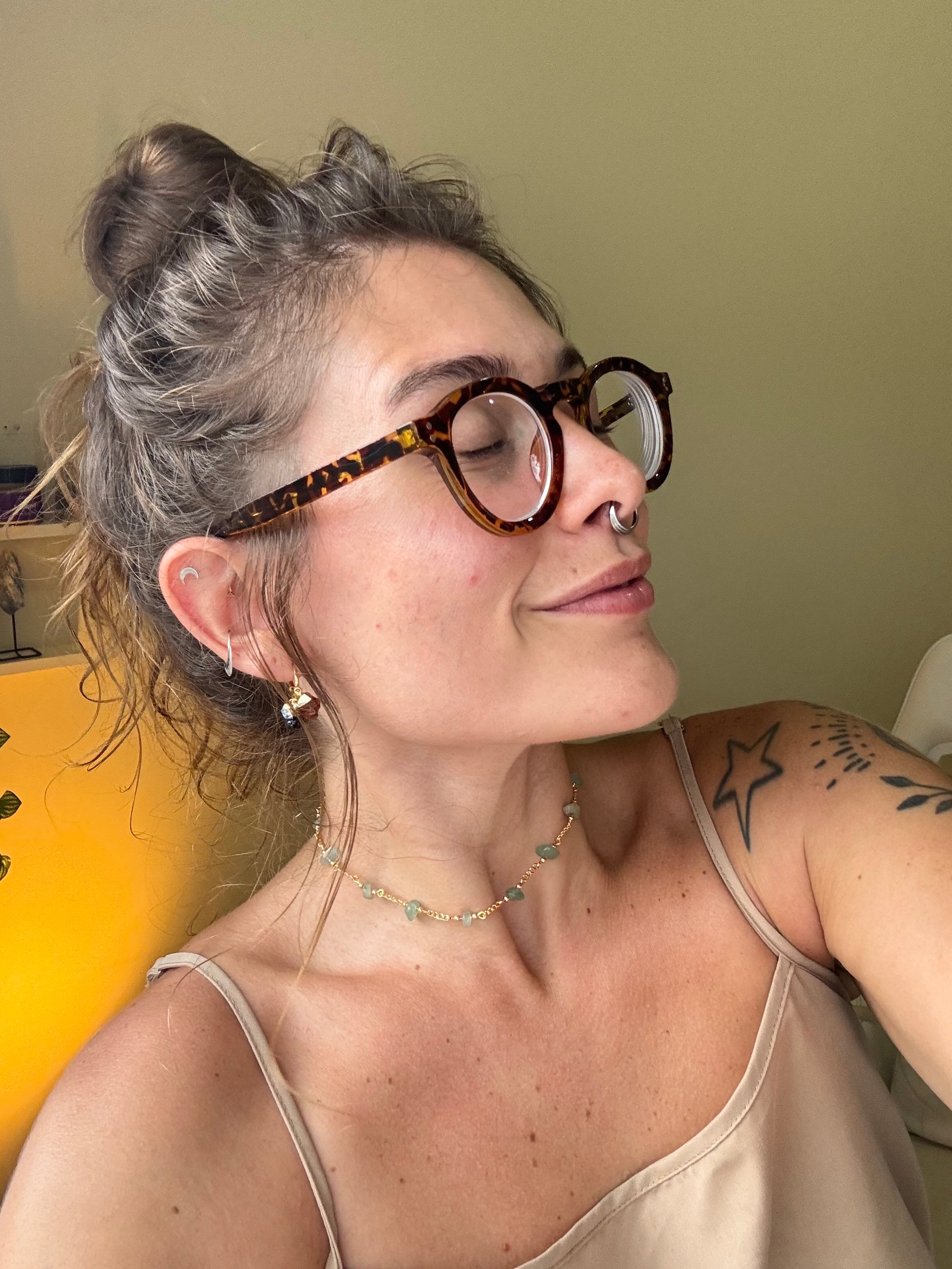 Nesta choker, ela aparece em pequenos pontos delicados ao redor do pescoço, criando uma aura sutil e elegante. Uma peça minimalista, mas cheia de significado.