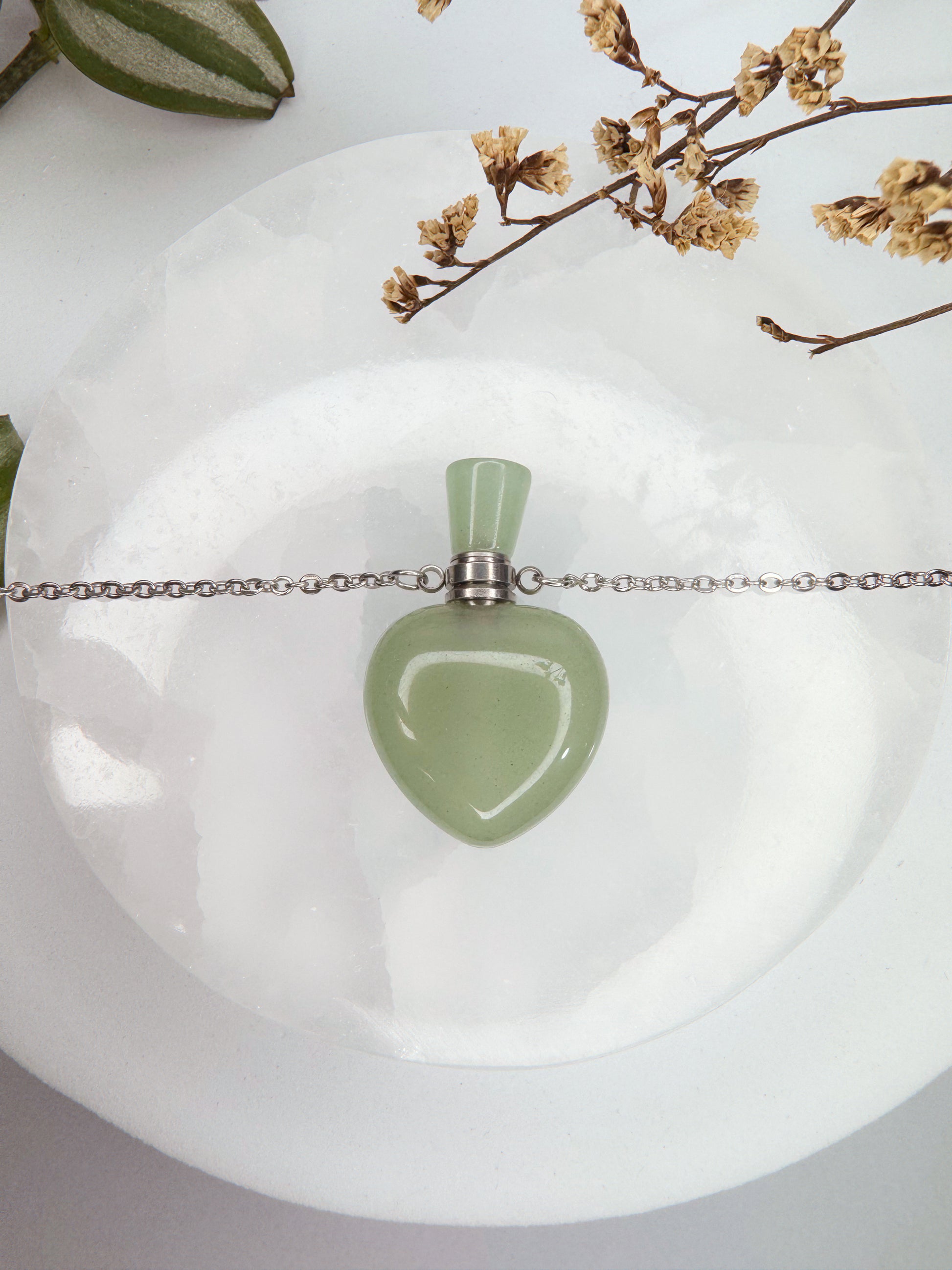 O colar difusor de quartzo verde é uma joia que combina beleza e bem-estar. Com um pingente de quartzo verde, conhecido por suas propriedades calmantes e de cura, este colar permite que você carregue consigo a energia positiva desta pedra preciosa. Além disso, o design do difusor permite que você adicione algumas gotas do seu óleo essencial favorito, proporcionando aromaterapia onde quer que você vá. Este colar é ideal para quem busca harmonia, equilíbrio emocional e um toque de elegância no seu dia a dia.